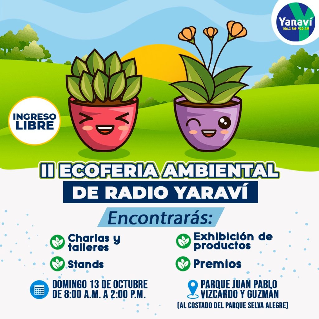Como parte de la campaña, esta emisora arequipeña también llevará a cabo este domingo 13 de octubre su Gran II Eco Feria Ambiental en el Parque Juan Pablo Vizcardo y Guzmán, a un costado del Parque Selva Alegre. Desde las 8 de la mañana hasta las 2 de la tarde.